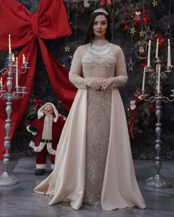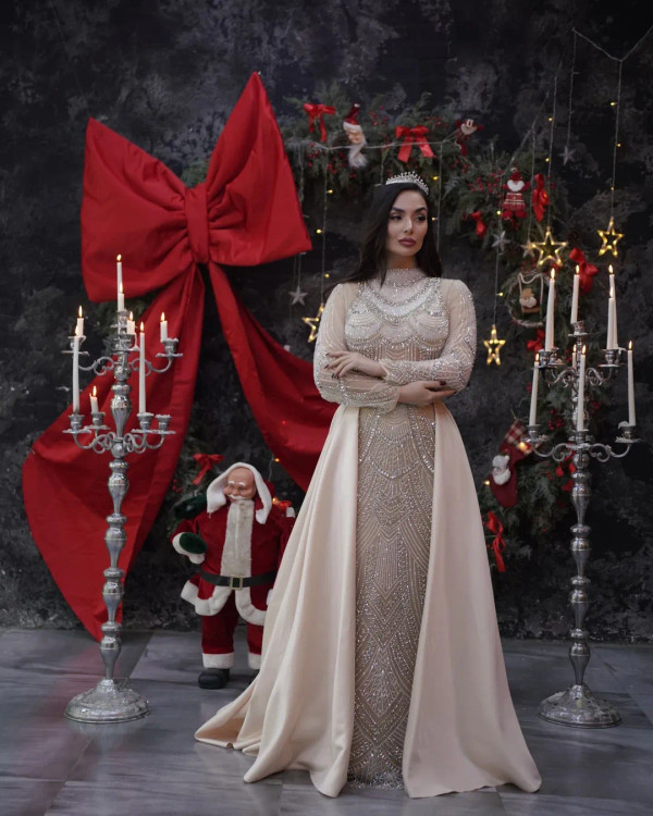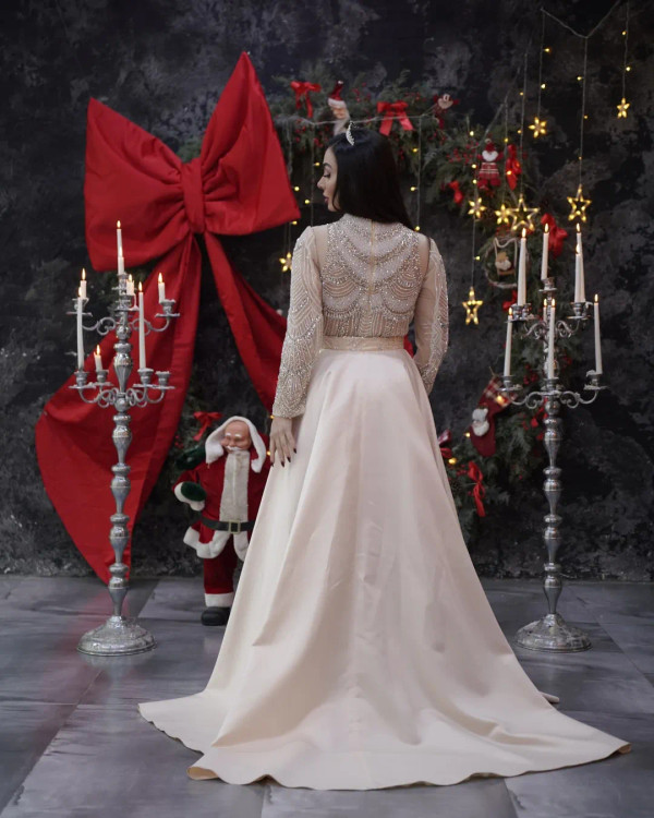 جلوهای از شکوه و هنر دستدوزی این لباس فوقالعاده زیبا با طراحی خاص و استایلی پر از وقار، شما را در هر مراسمی به مرکز توجه تبدیل میکند. با هر جزئیات این لباس، داستانی از هنر و خلاقیت روایت شده است: رنگ لباس: شنی ملایم با جلوهای کلاسیک و جذاب طراحی آستین بلند و یقه بسته: استایلی پوشیده، شیک و اصیل سنگدوزی دستی: استفاده از سنگهای نقرهای درخشان و کارشده با ظرافتی بیحد، که به لباس زیبایی بینظیری بخشیده است پارچه لطیف و منعطف: احساس راحتی همراه با استایل فاخر قد لباس و برش دقیق: برشی اندامنما که ظرافت و زنانگی شما را به زیبایی نشان میدهد این لباس انتخابی عالی برای مناسبتهایی همچون نامزدی، عقد، تولد و هر جشن خاصی که در آن میخواهید بدرخشید، است. برای مشاوره و سفارش، همین حالا از طریق با ما در ارتباط باشید. ### هشتگها: