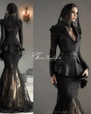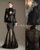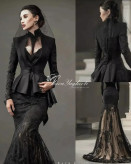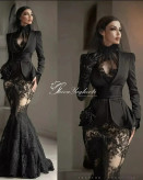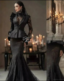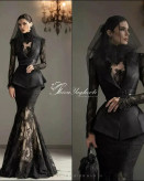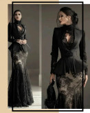 این طراحی مجلل با کت ساختاریافته و فیتشده، یقه شیک، ریزکاری تور و گیپور مشکی با الگوهای فاخر، و دامن ماهی با ترکیب بینظیر ساتن براق و تور گیپوری، شاهکارِ تعادل میان قدرت و زنانهگی. جزییات خاصی مثل: پژکهای ظریف روی مچ و یقه پوشش لایهدار تور جلوی سینه و پشت ترکیب چشمگیر مشکی با زمینه کرمی و مشکی براق دوخت دقیق و منحصربهفرد که فرم اندام رو برجسته میکنه. مناسب برای مراسم رسمی و مهمانیهای شب.