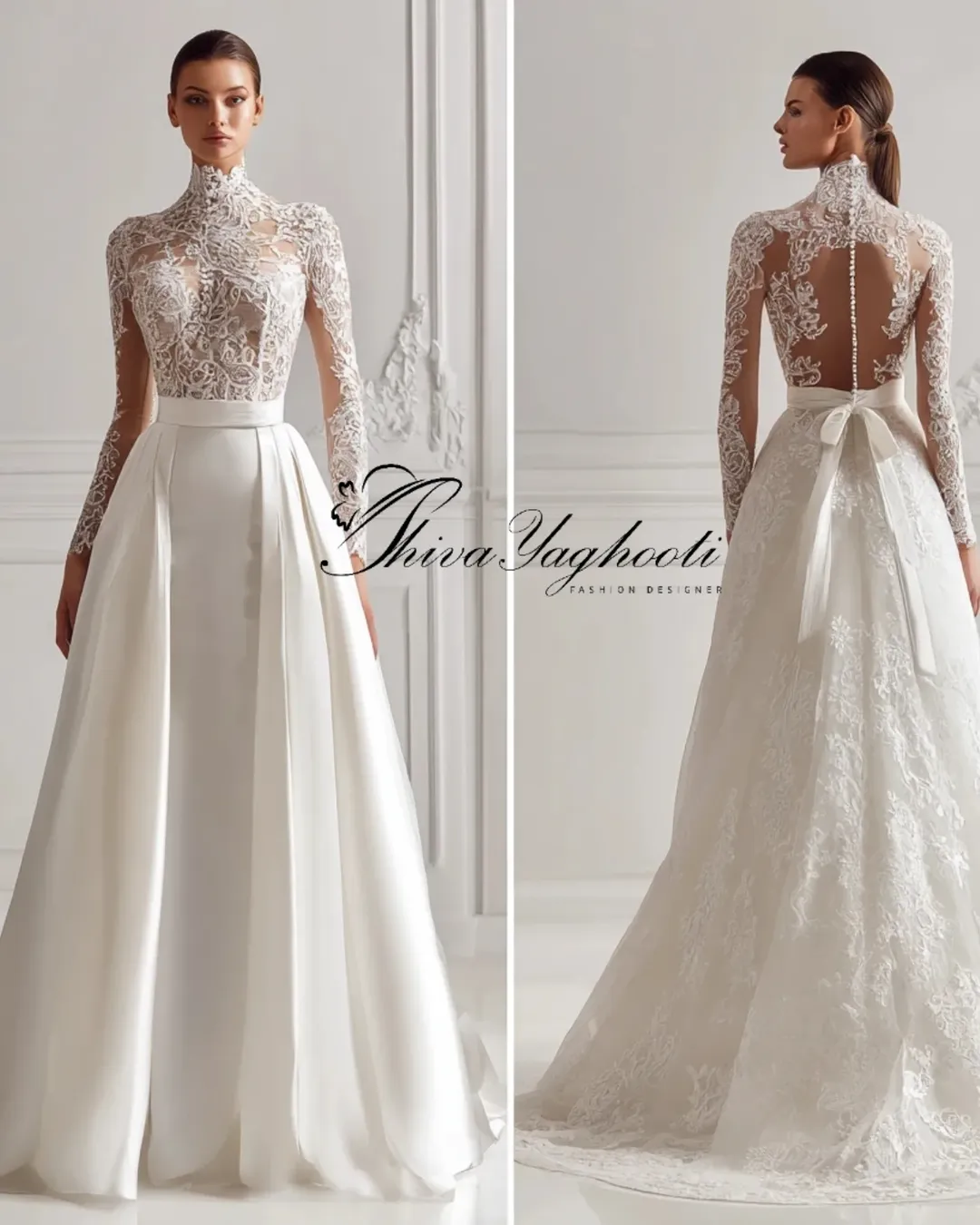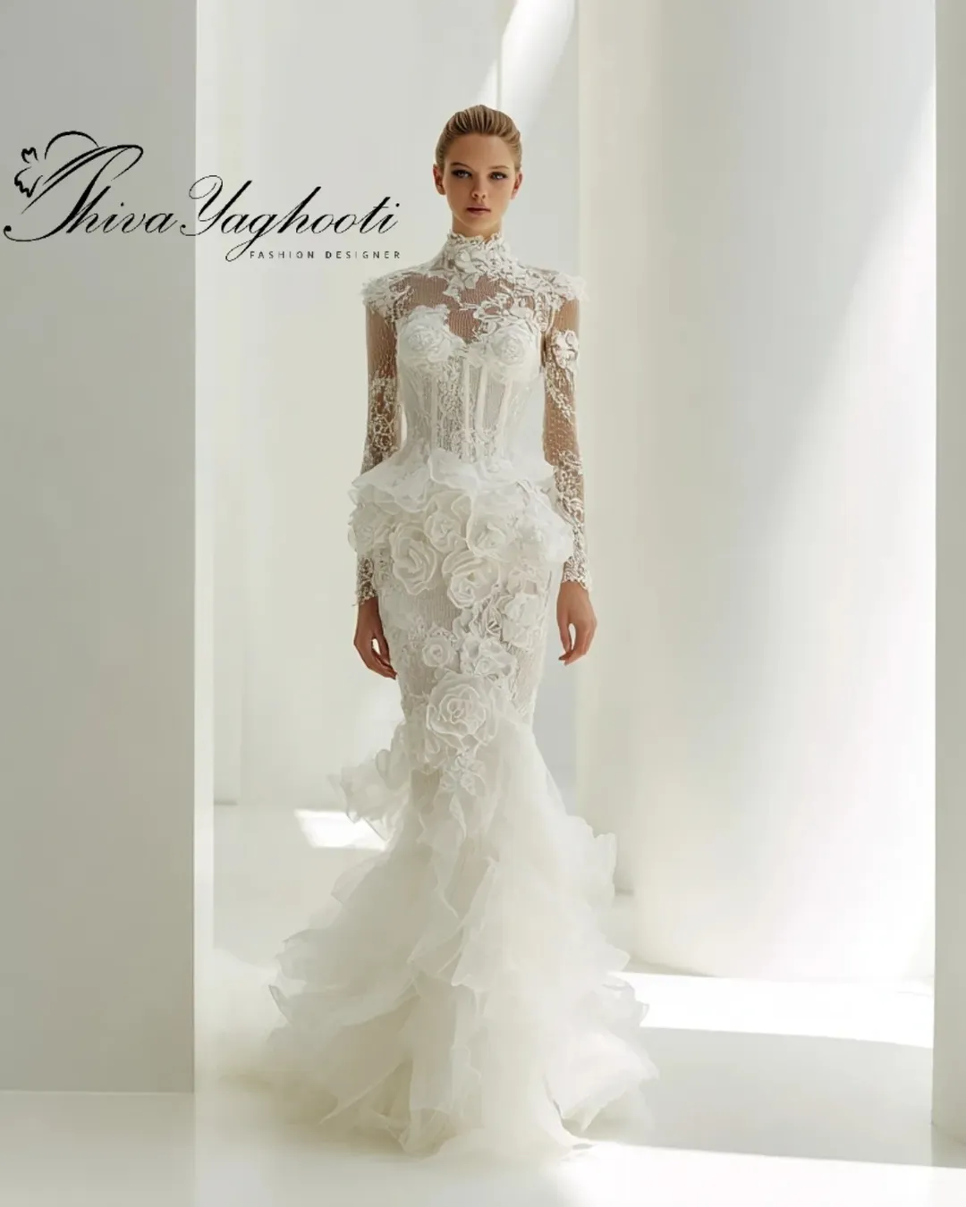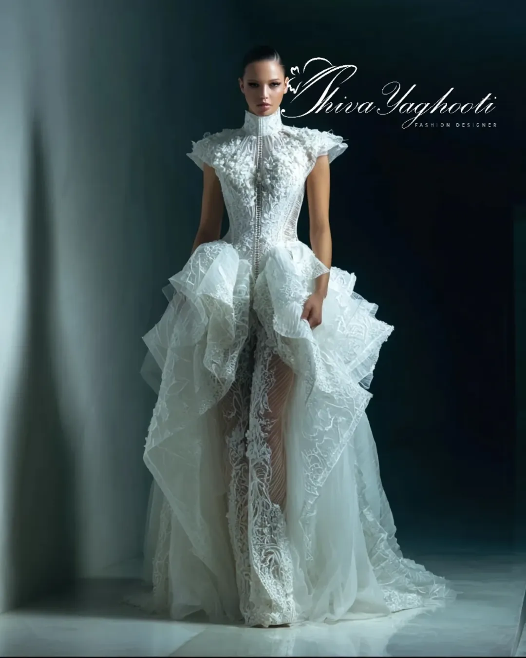 ترکیبی از گیپور سهبعدی دستدوز، یقههای معماریشده، کرست فیت و دامنهای پفدار چندلایه با حجم کوتور طراحی شده برای عروسهایی که میخواهند خاص، باشکوه و ماندگار باشند.
