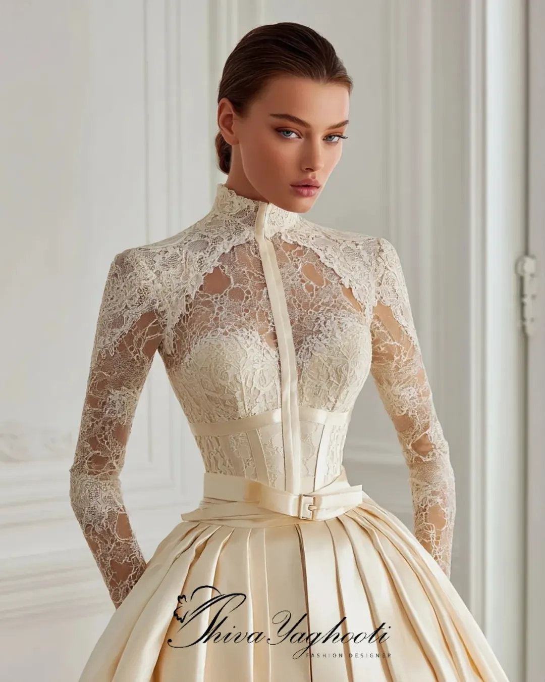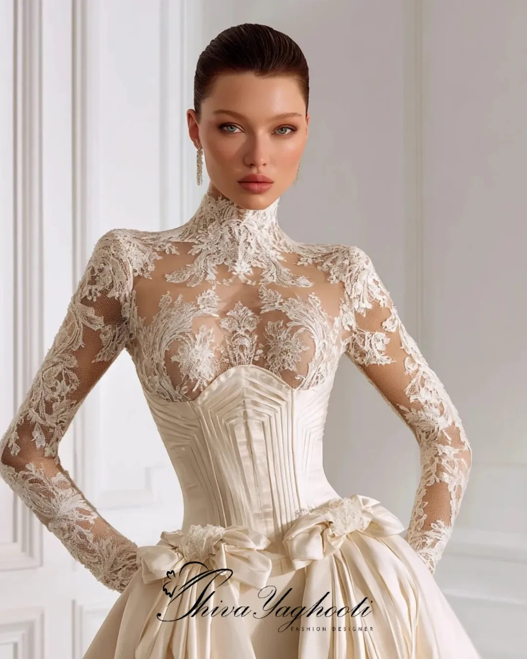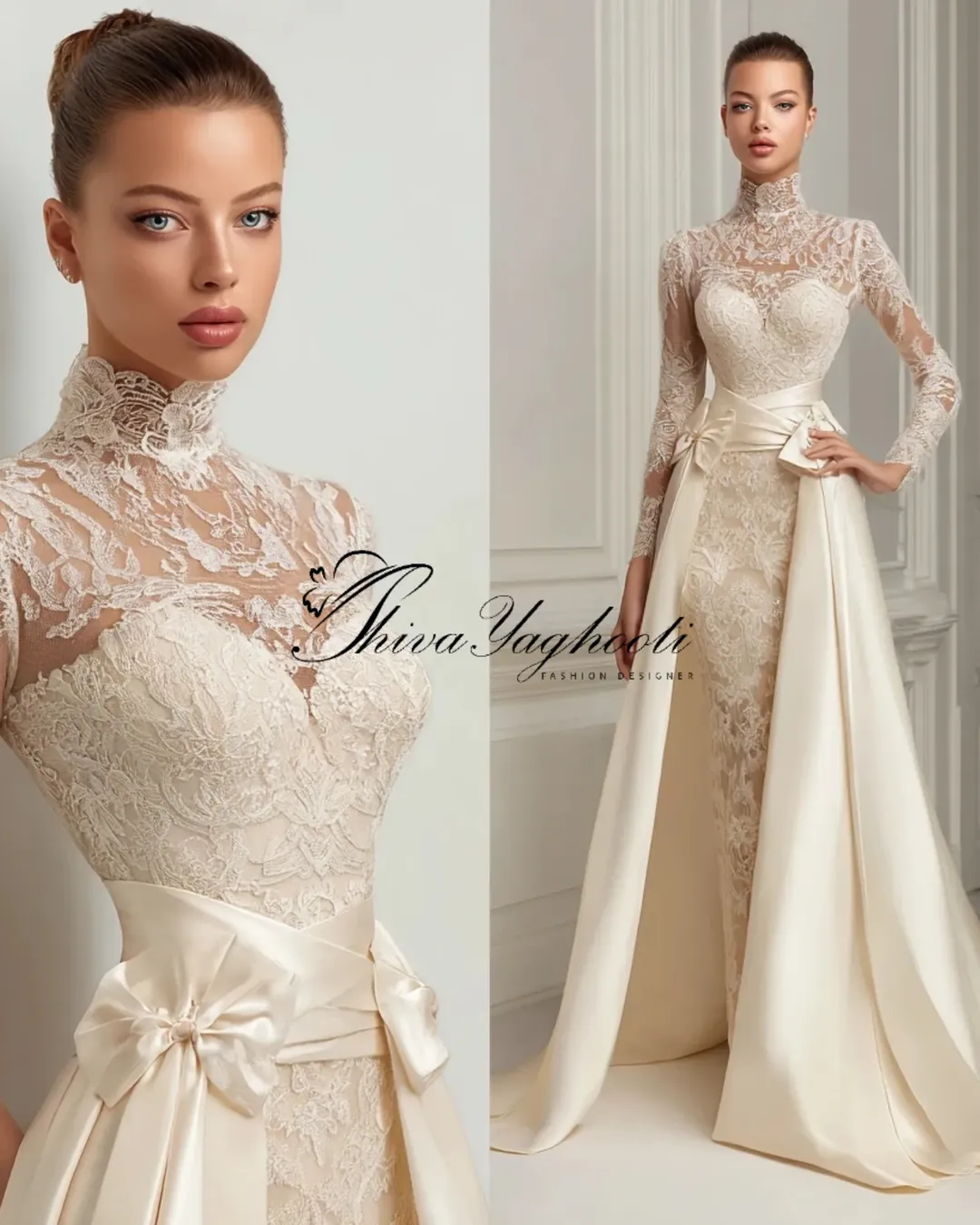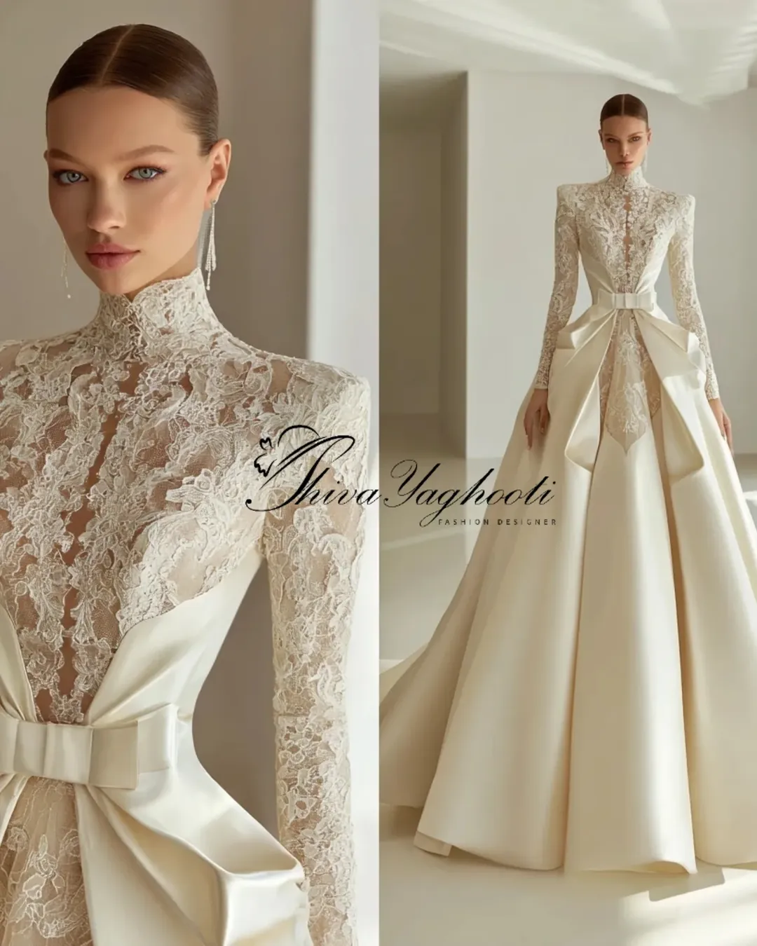 کالکشن عقد فاخر شیوا یاقوتی ترکیبی از یقه بستهی لِیس دستدوز، کرست معماریشده، دامن فاخر با حجم سلطنتی و پاپیونهای کوتور… طراحی شده برای عروسهایی که در شب عقد، مجلل، اصیل و ماندگار میدرخشند. این مدلها نمونه آماده ندارند و فقط بهصورت سفارشی دوخته میشوند.